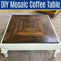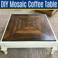See how I turned an OUTDATED two tier end table into a STYLISH mosaic coffee table in this before & after DIY Coffee Table Makeover tutorial.