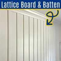I LOVE this beautiful & EASY DIY Board and Batten with Lattice and Crown Molding. It turned this room from boring to SO GOOD.