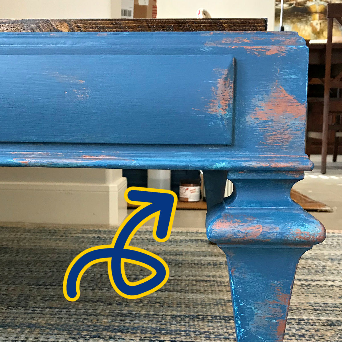 I LOVE this EASY and BEAUTIFUL DIY Blue Distressed Chalk Paint Look. Using Vaseline under the paint is the key to this furniture makeover.