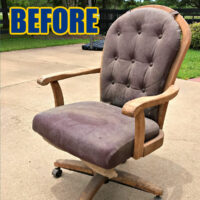 I LOVE this beautiful DIY Office Chair Makeover. With before and after photos. And easy tips to reupholster, paint, and replace wheels.
