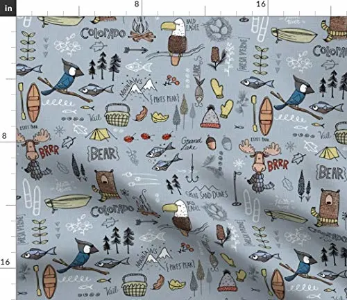 Spoonflower Fabric - Colorado Blue Bear Mountain Adventure Wild Nature Bird