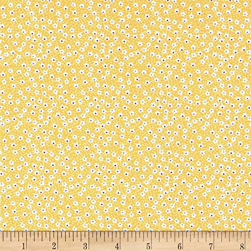 Santee Print Works Vintage Miniatures Flowers Fabric, Bright Yellow/White, Fabric By The Yard