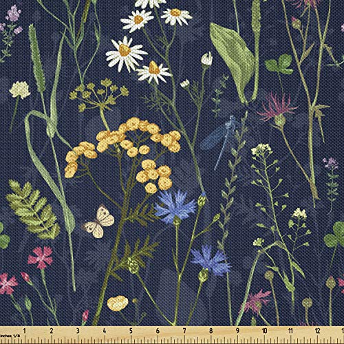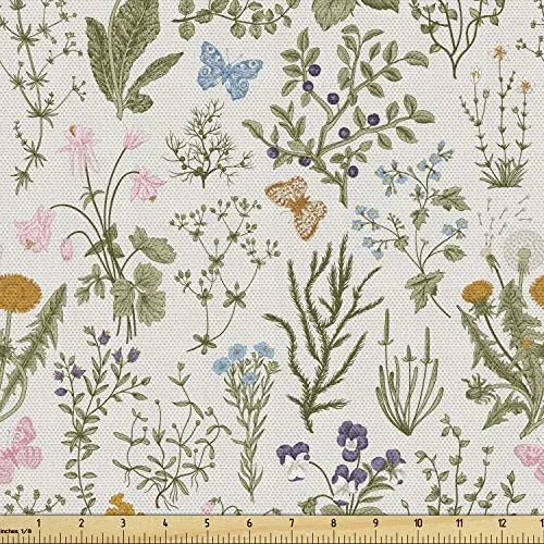 Ambesonne Floral Fabric by The Yard, Vintage Garden Plants