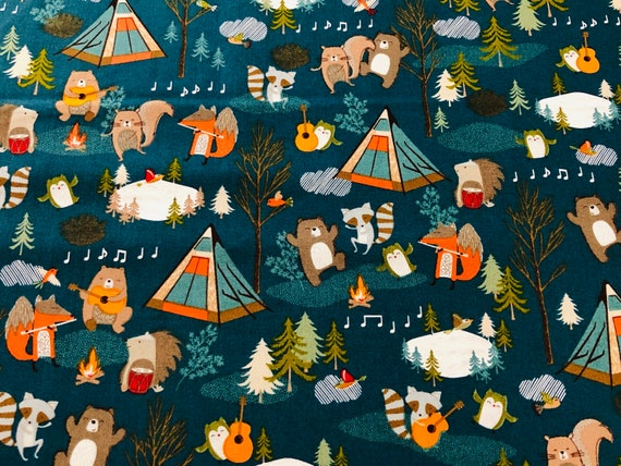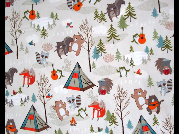 Off White Multicolor Camping Animals Woodland Bear Fox | Etsy