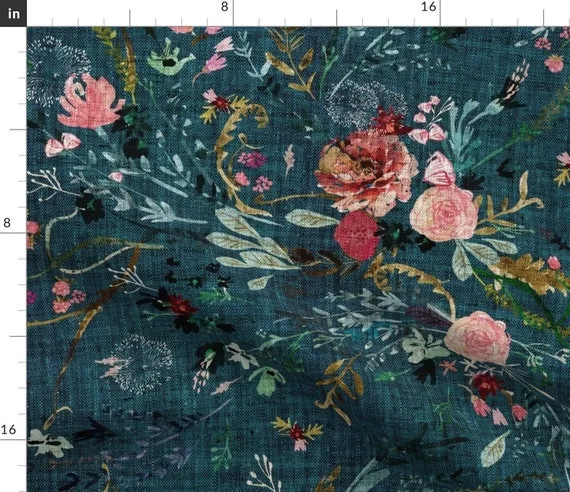 Boho Floral Fabric Fable Floral Teal Jumbo by Nouveau | Etsy