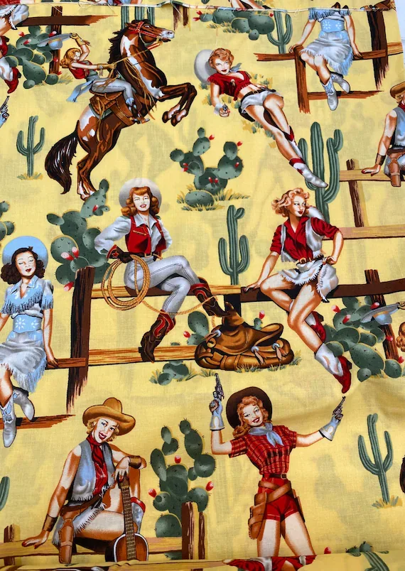 Alexander Henry From the Hip in Yellow Cowgirl Fabric Pin up | Etsy