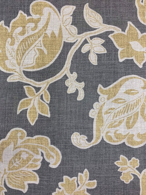 Floral Print Grey Gold Off-white Upholstery Fabric by the | Etsy
