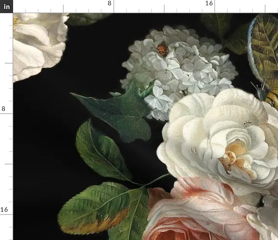Floral Natural Black White Large Scale Tessa Floral | Etsy