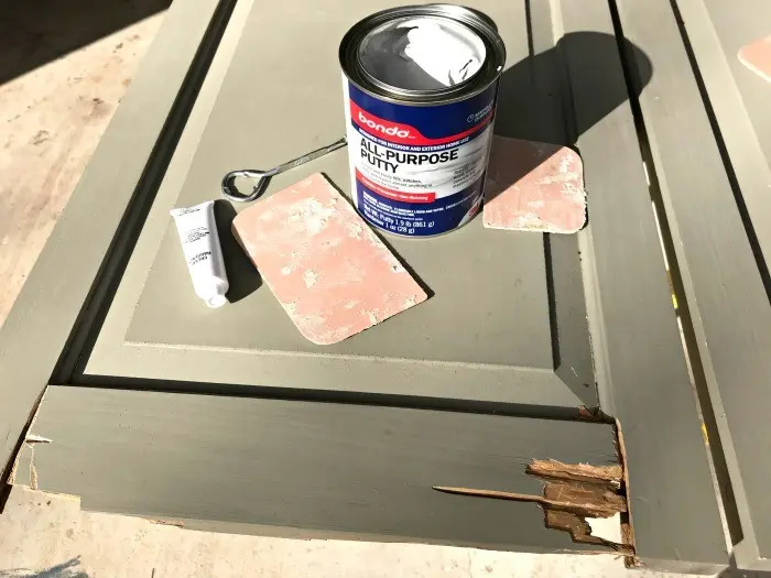 I knew right away I’d be using Bondo to repair the wood rot on these shutters.