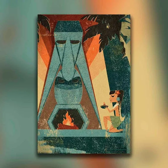 Kahiki Tiki Mystery Girl Vintage Style Art Print | Etsy