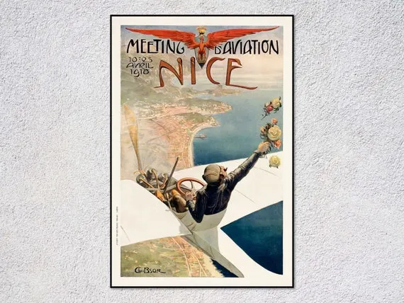 Original Vintage Poster Meeting D'aviation Nice 1910 | Etsy