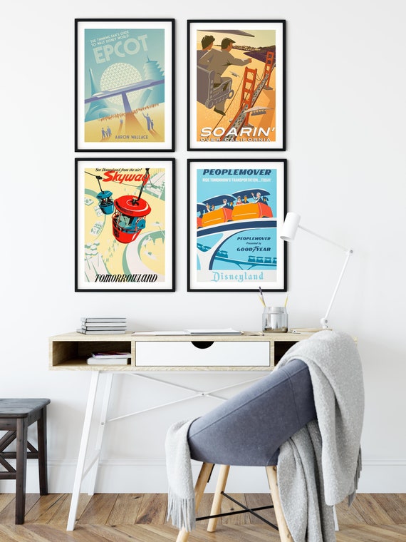 Disney Tourist Pack Vintage Poster Print Set of 4 Wall | Etsy