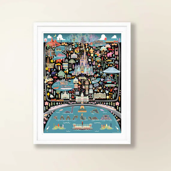 MAGIC KINGDOM Map Art Whimsical Vintage Map | Etsy