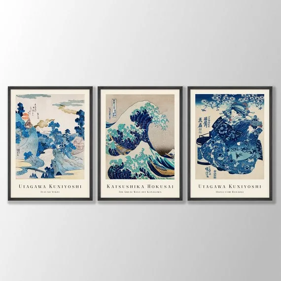 Japanese Prints Set of 3 Woodblock Art | Etsy