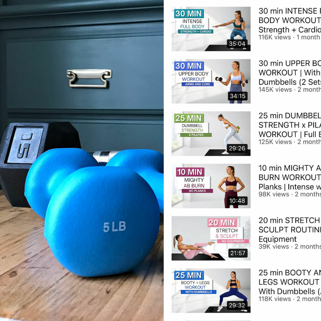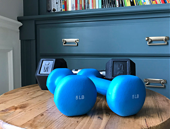 And, twice a week, I work on strength-training for my upper body with free weights. I also get a ton of full body muscle work just doing all of my home DIY projects around here.