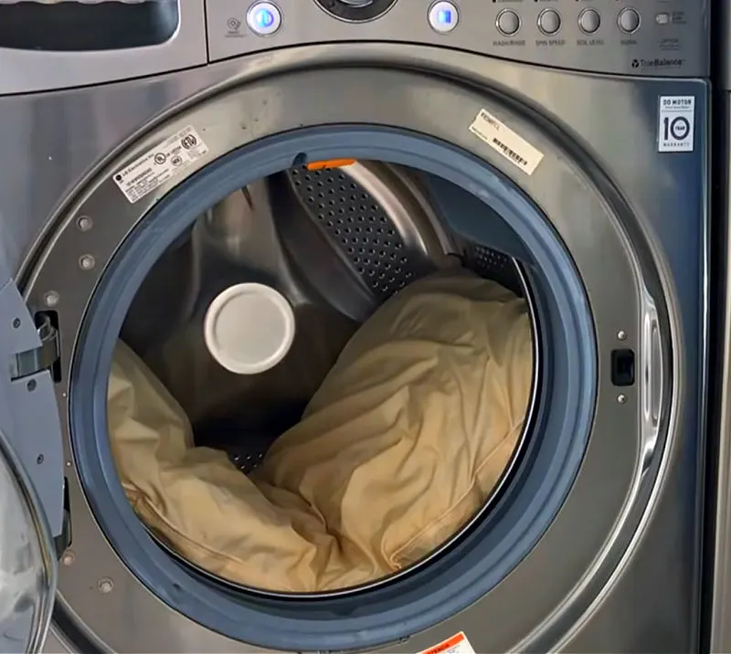 After soaking overnight, wash the pillows (max 2 pillows per wash) in your washing machine with normal detergent.